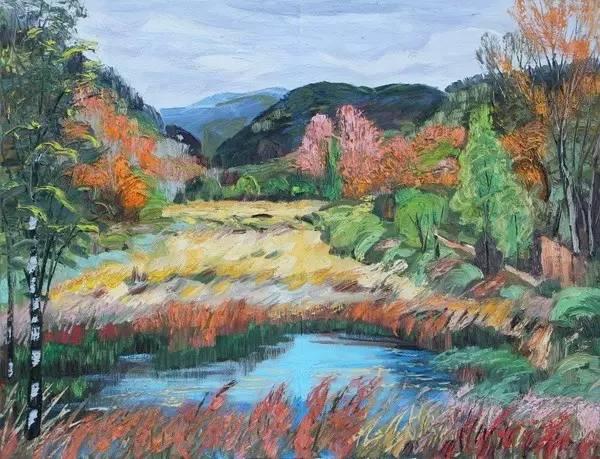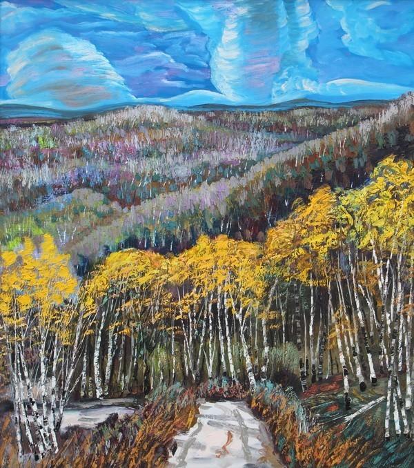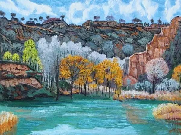 徐建新1985年畢業(yè)于西北師范大學(xué)美術(shù)系油畫專業(yè),1995年至1996年進(jìn)修于清華大學(xué)美術(shù)學(xué)院,師從吳冠中、張汀、袁運(yùn)甫、劉巨德等先生,系甘肅省美術(shù)家協(xié)會(huì)理事、慶陽市美術(shù)家協(xié)會(huì)副主席。在創(chuàng)作上,其作品多次入展全國(guó)、全省書畫展并獲獎(jiǎng);在教學(xué)上,多次獲得省市優(yōu)秀教學(xué)成果獎(jiǎng)。先后出版有《徐建新素描》《徐建新線描》《徐建新油畫》《徐建新書法》《徐建新人物素描教法》等專著。他的這幅《北國(guó)風(fēng)光》創(chuàng)作于2016年6月,以慶陽華池南梁紅色革命根據(jù)地為創(chuàng)作背景,畫面氣勢(shì)磅礴,畫作色彩艷麗、層次清楚、透視感極強(qiáng),充分展示了雄壯優(yōu)美的黃土高原和山川秀麗的南梁革命根據(jù)地。