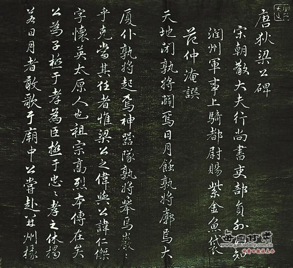 范仲淹撰寫的碑文分為四部分:第一部分贊揚了狄仁杰的不凡政績;第二部分從十五個方面列舉了狄仁杰的忠與孝的事實,并在每一二件事實后面進行了極簡短的評議;第三部分作了總結(jié);第四部分為碑文的銘文。碑文開頭大氣磅礴,先聲奪人:“天地閉,孰將辟焉?日月蝕,孰將廓焉?大廈仆,孰將起焉?神器墜,孰將舉焉?”一連四個排比設(shè)問,高屋建瓴。接著他自問自答:“巖巖乎!克當其任者,惟梁公之偉歟。”在碑文中,范仲淹敘述了狄仁杰,不畏強權(quán)的高大形象,栩栩如生的刻畫出了這個被武則天譽為“豈朕之臣,社稷之臣也”的錚錚鐵骨。范仲淹在碑文中還連舉史上杰出人物與狄仁杰對比:“商有三仁,弗救其滅;漢有四皓,正于未奪。嗚呼!武暴如火,李寒如灰,何心不隨,何力可回!我公哀傷,拯天之亡,逆長風(fēng)而孤鶱,訴大川以獨航。金可革,公不可革,孰為乎剛!地可動,公不可動,孰為乎方!一朝感通,群陰披攘。天子既臣而皇,天下既周而唐,七世發(fā)靈,萬年垂光。噫!非天下之至誠其孰能當!”整篇行文夾敘夾議,褒貶精到,使后人讀之油然而生敬意。