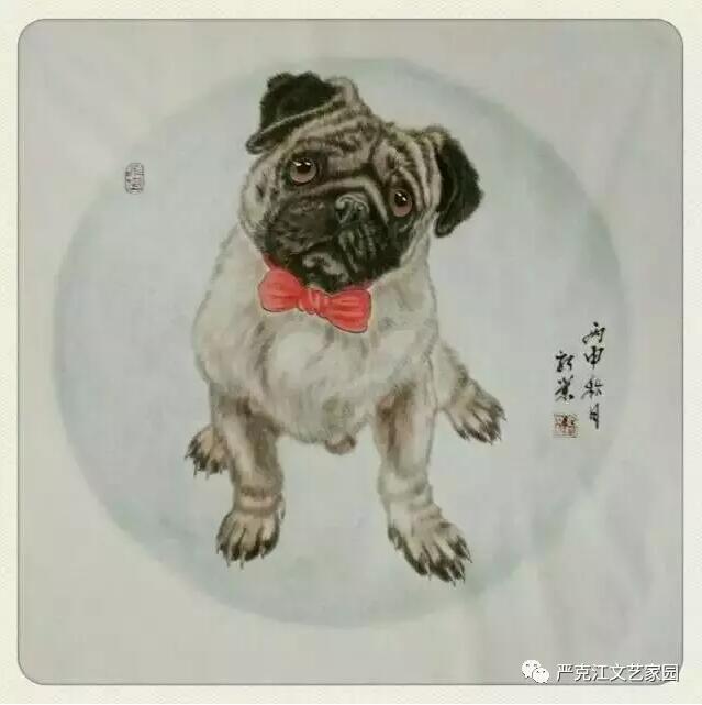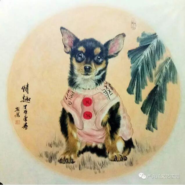 犬是最通人性的動(dòng)物,亦是人類患難與共的朋友,它對(duì)人類特別忠誠(chéng),因而具有忠貞不渝的意義。“牧羊犬三千里尋主”,“義犬救主”等例子很好地說(shuō)明了這一點(diǎn)。常言道“貓來(lái)窮,狗來(lái)富?!彼匀嘤型?cái)?shù)脑⒁?,“自古牧民惜此犬,饑腸食雪不離羊?!边@也是對(duì)犬忠誠(chéng)的真實(shí)寫照。也是民間藝術(shù)喻意象征的特色。“犬盼人歸迎陌上,搖頭擺尾蹭懷中。”把犬對(duì)主人的那份情感和依賴,描寫的淋漓盡致。