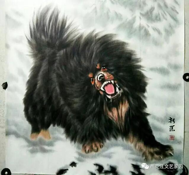 馬新榮這些年一直沉浸在藝術(shù)的創(chuàng)作之中,沉浸在精益求精的境界里,題材上,對(duì)牧羊犬的偏愛(ài),以近癡迷狀態(tài)。他以最飽滿的熱情從生活中汲取營(yíng)養(yǎng),以敏銳的觀察力充實(shí)作品的內(nèi)涵,藝術(shù)上,虛實(shí)相生,筆簡(jiǎn)意繁,亦是不斷的探索與創(chuàng)新??芍^是蘸墨含情,調(diào)色用心。在淡化線條中深化意境,在突出形態(tài)的同時(shí)凸現(xiàn)神韻。有句行話說(shuō)得好:“作畫妙在似與不似之間,太似為媚俗,不似為欺。”在這一點(diǎn)和造型設(shè)計(jì)上,馬新榮也把控的恰到好處,做到了既不流于媚俗,也不狂怪欺世。