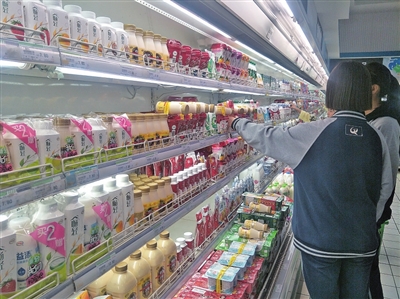 南大街一家超市負(fù)責(zé)冷飲貨架的銷售員向記者介紹,絕大部分酸奶的保質(zhì)期都不長,所以很多距離保質(zhì)期還有七八天的商品都會被進(jìn)行捆綁促銷。