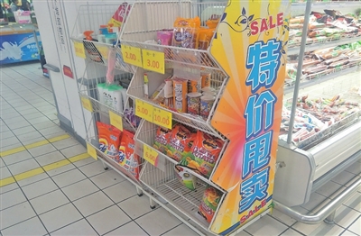 部分超市設(shè)置專門的貨架特價促銷臨期食品。