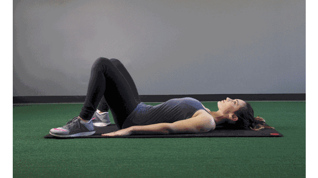 平躺于地,膝蓋彎屈,雙腳分開,與臀部同寬,手臂放在兩側(cè)。緩慢抬起髖部,平穩(wěn)離開地面。然后緩緩放下。重復(fù)15次。