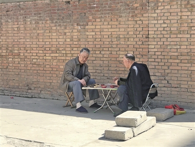 西峰區(qū)秦霸嶺東路某小區(qū)老年人下棋娛樂。
