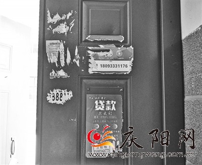 慶化路一小區(qū)居民樓門(mén)上張貼的小廣告