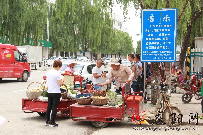 慶陽(yáng)網(wǎng)訊(見(jiàn)習(xí)記者 南力)近日,記者在西峰城區(qū)走訪(fǎng)發(fā)現(xiàn),多家農(nóng)貿(mào)市場(chǎng)附近仍存在流動(dòng)商販占道經(jīng)營(yíng)的現(xiàn)象。這些流動(dòng)攤販的無(wú)序經(jīng)營(yíng),不僅阻礙了周邊道路的正常通行,而且存在著食品安全隱患,衛(wèi)生環(huán)境也令人擔(dān)憂(yōu)。