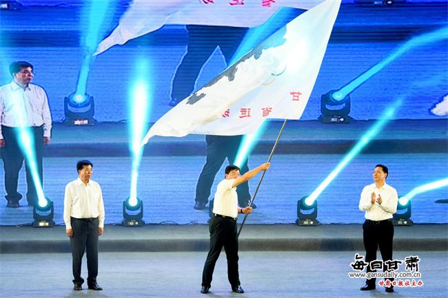 閉幕式上,蘭州市常務(wù)副市長胥波接過省運會大旗,蘭州市將承辦2022年第十五屆省運會。