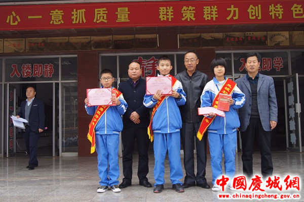 儀式由教務(wù)主任主持,共有四項議程。首先組織國旗隊隊員升旗,全體師生齊唱國歌、行注目禮;第二項,宣讀學(xué)?!蛾P(guān)于授予曹瑞祥、樊卓欣、朱阿嬌“法制勇敢好少年”的表彰決定》《關(guān)于向“法制勇敢好少年”曹瑞樣、樊卓欣、朱阿嬌學(xué)習(xí)的倡議書》及慶城縣公安局對三名同學(xué)的表揚信;第三項,由八年級學(xué)生代表陳柯同學(xué)進行題為《學(xué)習(xí),我們的職責(zé)》的國旗下演講;最后,學(xué)校負(fù)責(zé)人做了總結(jié)講話,要求全體老師要根據(jù)縣局下發(fā)的《慶城縣2018年秋季初中期中考試安排》,安排好課程進度,組織好考前復(fù)習(xí),同時,寫好個人政治學(xué)習(xí)筆記和業(yè)務(wù)學(xué)習(xí)筆記,強化師德師風(fēng)建設(shè),爭做“四有”好老師。
