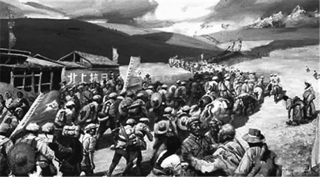 展現(xiàn)紅軍北上抗日情景的繪畫作品(資料圖)。