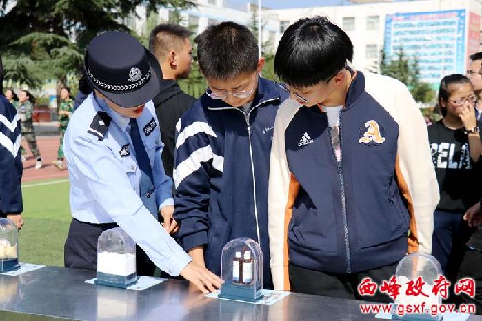 會(huì)前,組織全體師生觀看了仿真毒品,現(xiàn)場(chǎng)發(fā)放了禁毒宣傳折頁、筆袋等宣傳品1000余份,并組織學(xué)生簽訂了“拒絕毒品、珍愛生命”禁毒承諾書;慶陽二中聘請(qǐng)肖建軍為本校禁毒校外輔導(dǎo)員,并頒發(fā)了聘書。