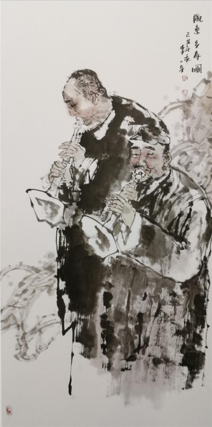 ??????? 中國畫中的人物畫歷史悠久。隨著社會(huì)的進(jìn)步和中國傳統(tǒng)文化的不斷發(fā)展變化,人們對(duì)繪畫認(rèn)知和追求的不斷提高,中國人物畫的理論和實(shí)踐日趨完善。特別是現(xiàn)代人物畫在繼承傳統(tǒng)的基礎(chǔ)上,與現(xiàn)代人們的生活實(shí)際緊密結(jié)合起來,突出表現(xiàn)現(xiàn)代人們的精神風(fēng)貌與社會(huì)生活現(xiàn)狀。但是,從繪畫理論層面來看,仍然與南朝謝赫關(guān)于中國畫的“六法論”一脈相承?!傲ā钡幕緝?nèi)容是氣韻生動(dòng)、經(jīng)營(yíng)位置、骨法用筆、應(yīng)物象形、隨宜類賦彩、傳移模寫。古人評(píng)價(jià)繪畫水平高低,主要依據(jù)這六法,也就是這六條品評(píng)標(biāo)準(zhǔn)。當(dāng)代人物畫的評(píng)價(jià)體系,也超不出六法的基本范疇。例如,我們欣賞一件人物畫作品,首先要從整體效果入手,就是要求畫面氣韻生動(dòng)、視覺沖擊力要強(qiáng)。它是一個(gè)有機(jī)整體,每個(gè)局部互相牽連,相互照應(yīng)。欣賞一件好的美術(shù)作品,一看讓人眼前一亮,第一眼很打動(dòng)人,活靈活現(xiàn),生動(dòng)傳神,這件作品就是一件好作品。所以一件作品的評(píng)價(jià),氣韻生動(dòng)是第一位的。其次,好的作品還要耐看,再看它的構(gòu)圖章法布局,也就是六法中的經(jīng)營(yíng)位置,要求畫面主題突出,布局合理,點(diǎn)線面組織得當(dāng),黑白灰調(diào)子和諧。畫面的節(jié)奏感、韻律感都處理的得當(dāng)。再深入地看,看畫面的筆墨效果,注重筆墨的功力和線條的質(zhì)量,就是強(qiáng)調(diào)骨法用筆。至于應(yīng)物象形,傳移模寫、隨類賦彩,也是每件成功作品必不可少的內(nèi)容。就是要看作品抓形準(zhǔn)確、色彩合理,有生活基礎(chǔ),構(gòu)成一個(gè)有機(jī)的整體。