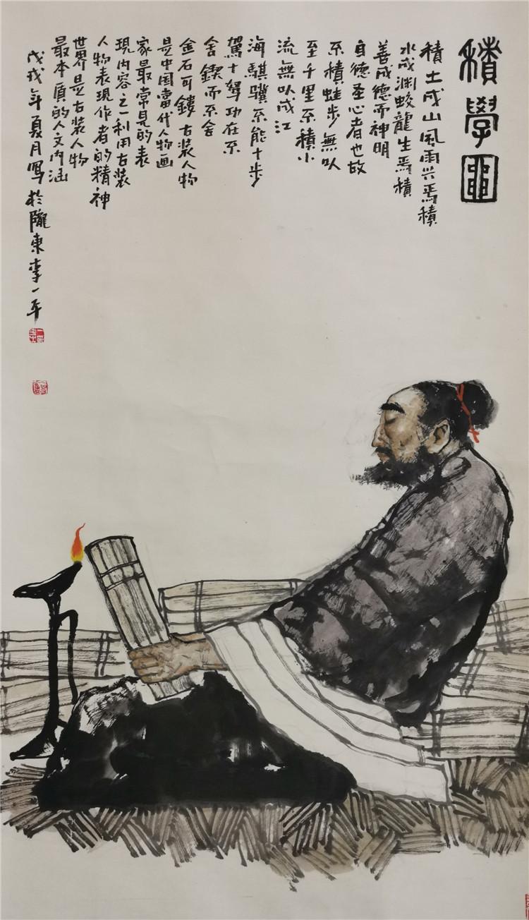 中國(guó)畫(huà)中的人物畫(huà)歷史悠久。隨著社會(huì)的進(jìn)步和中國(guó)傳統(tǒng)文化的不斷發(fā)展變化,人們對(duì)繪畫(huà)認(rèn)知和追求的不斷提高,中國(guó)人物畫(huà)的理論和實(shí)踐日趨完善。特別是現(xiàn)代人物畫(huà)在繼承傳統(tǒng)的基礎(chǔ)上,與現(xiàn)代人們的生活實(shí)際緊密結(jié)合起來(lái),突出表現(xiàn)現(xiàn)代人們的精神風(fēng)貌與社會(huì)生活現(xiàn)狀。但是,從繪畫(huà)理論層面來(lái)看,仍然與南朝謝赫關(guān)于中國(guó)畫(huà)的“六法論”一脈相承?!傲ā钡幕緝?nèi)容是氣韻生動(dòng)、經(jīng)營(yíng)位置、骨法用筆、應(yīng)物象形、隨宜類(lèi)賦彩、傳移模寫(xiě)。古人評(píng)價(jià)繪畫(huà)水平高低,主要依據(jù)這六法,也就是這六條品評(píng)標(biāo)準(zhǔn)。當(dāng)代人物畫(huà)的評(píng)價(jià)體系,也超不出六法的基本范疇。例如,我們欣賞一件人物畫(huà)作品,首先要從整體效果入手,就是要求畫(huà)面氣韻生動(dòng)、視覺(jué)沖擊力要強(qiáng)。它是一個(gè)有機(jī)整體,每個(gè)局部互相牽連,相互照應(yīng)。欣賞一件好的美術(shù)作品,一看讓人眼前一亮,第一眼很打動(dòng)人,活靈活現(xiàn),生動(dòng)傳神,這件作品就是一件好作品。所以一件作品的評(píng)價(jià),氣韻生動(dòng)是第一位的。其次,好的作品還要耐看,再看它的構(gòu)圖章法布局,也就是六法中的經(jīng)營(yíng)位置,要求畫(huà)面主題突出,布局合理,點(diǎn)線面組織得當(dāng),黑白灰調(diào)子和諧。畫(huà)面的節(jié)奏感、韻律感都處理的得當(dāng)。再深入地看,看畫(huà)面的筆墨效果,注重筆墨的功力和線條的質(zhì)量,就是強(qiáng)調(diào)骨法用筆。至于應(yīng)物象形,傳移模寫(xiě)、隨類(lèi)賦彩,也是每件成功作品必不可少的內(nèi)容。就是要看作品抓形準(zhǔn)確、色彩合理,有生活基礎(chǔ),構(gòu)成一個(gè)有機(jī)的整體。