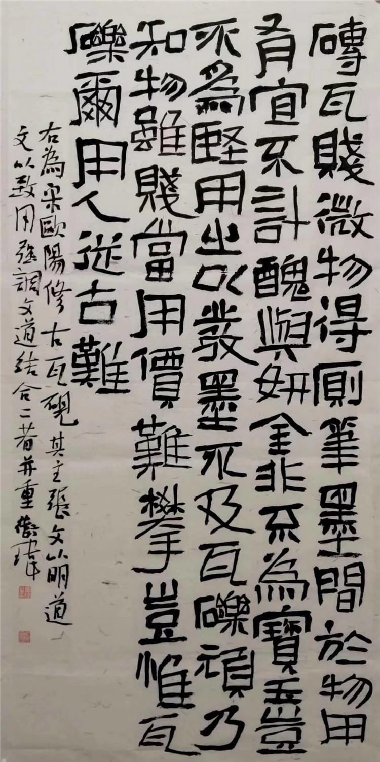 書法藝術之路很漫長,碑學書法的研究繼承和創(chuàng)新需要巨大的努力和辛苦,衛(wèi)瑋才華出眾,年少得志,相信他在碑學的路上愈走愈寬廣,行走出屬于自己的一條途徑,構建起自己的一個藝術花園。
