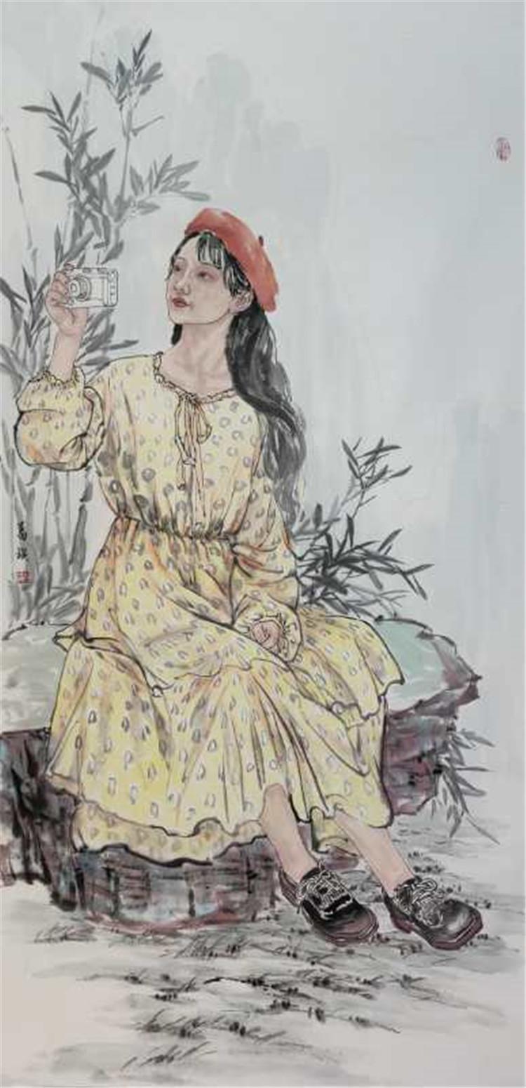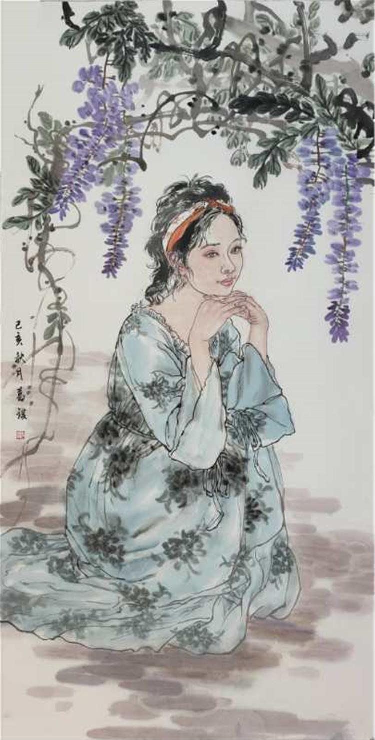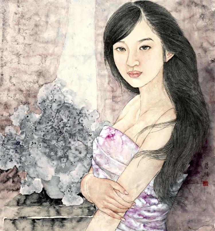 初到創(chuàng)研班的時(shí)候,在諸多學(xué)員中,葛琪的畫并不出色。經(jīng)過一段研習(xí)以后,葛琪繪畫創(chuàng)作進(jìn)步明顯,面貌一新。她在繼承傳統(tǒng)工筆畫語言結(jié)構(gòu)的基礎(chǔ)上,融入西方造型技法,形成了一些自己的現(xiàn)代審美和特有的語言形式。在創(chuàng)作過程中,她對(duì)線條有著較強(qiáng)的把控能力,在對(duì)線條的運(yùn)用上,既得傳統(tǒng)文化之精髓,也富于創(chuàng)新變化,風(fēng)格逐漸形成。特別是她的工筆人物畫,已成為與她同時(shí)來學(xué)習(xí)的學(xué)員中創(chuàng)作進(jìn)步最顯著的一位。