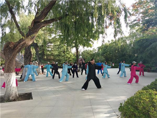 早晨的東湖公園里,市民在打太極拳。本報見習(xí)記者張瞳攝