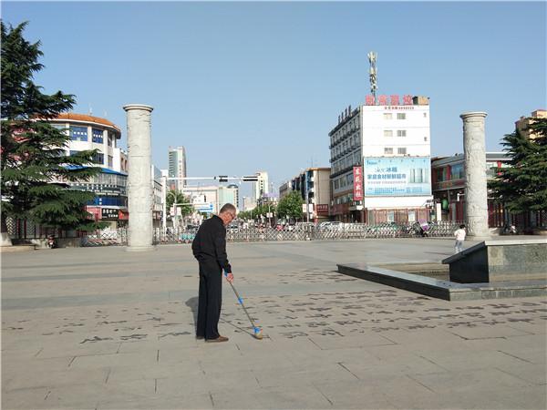 早晨的東湖公園外,市民在書寫毛筆字。 本報見習(xí)記者張瞳 攝