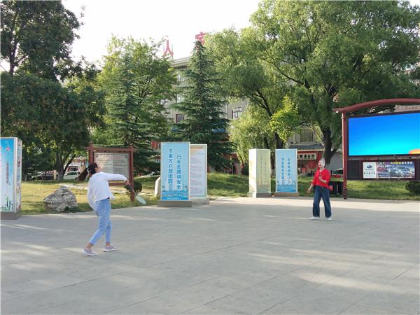 早晨的東湖公園外,市民在打羽毛球。 本報見習(xí)記者張瞳 攝