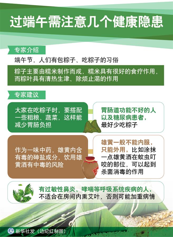需要注意的是,有人喜歡把粽子當零食、甜點食用,這是不對的。唐細良建議,大家在吃粽子時要搭配一些粗糧、蔬菜,這樣能減少胃腸負擔(dān)。胃腸道功能不好的人以及糖尿病患者,最好少吃粽子。
