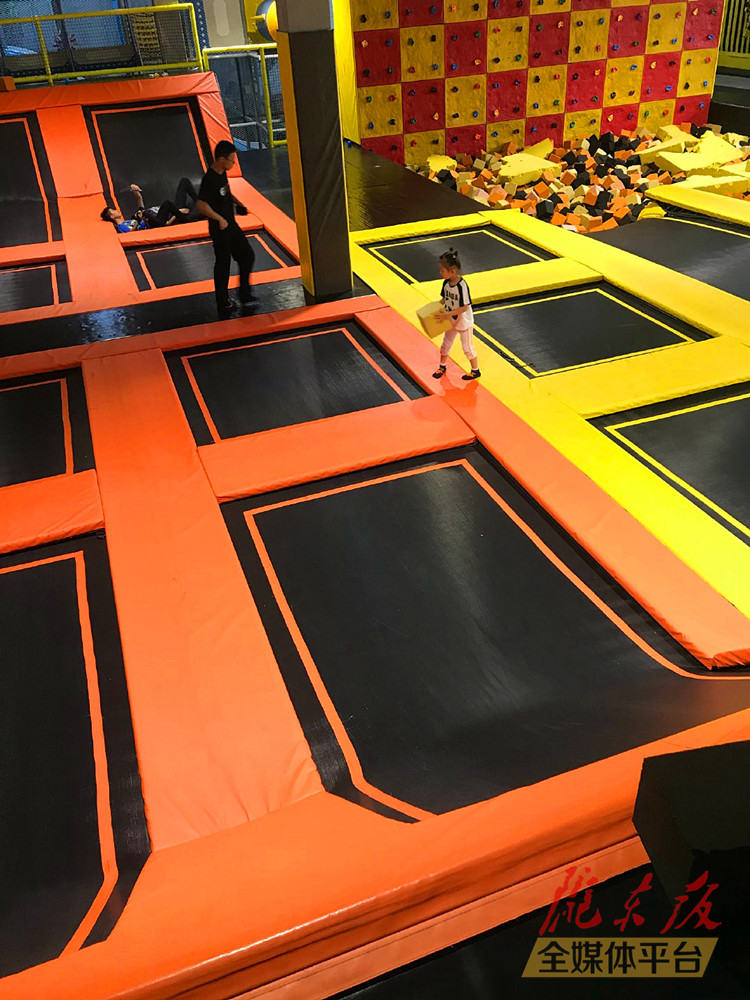 ????受到家長(zhǎng)和孩子青睞的,不只有室外蹦床,還有室內(nèi)蹦床。相比于室外蹦床,室內(nèi)蹦床沒(méi)有安全繩束縛,似乎更受孩子們歡迎。記者在城區(qū)某蹦床俱樂(lè)部看到,幾個(gè)孩子在不同蹦床區(qū)域來(lái)回跳躍,甚至追逐、打鬧,有些孩子在蹦床上跳躍過(guò)程中,不慎摔倒,有些孩子還做起了跪彈、坐彈等有些難度的蹦床動(dòng)作。但旁邊的工作人員對(duì)這些孩子的危險(xiǎn)操作并未進(jìn)行制止。在蹦床圍欄外陪護(hù)孩子的家長(zhǎng)孫先生擔(dān)憂的說(shuō):“下落起跳幅度這么大,看得人心驚肉跳?!睂O先生表示,這樣激烈的體驗(yàn)項(xiàng)目讓他對(duì)孩子的安全時(shí)刻提心吊膽。