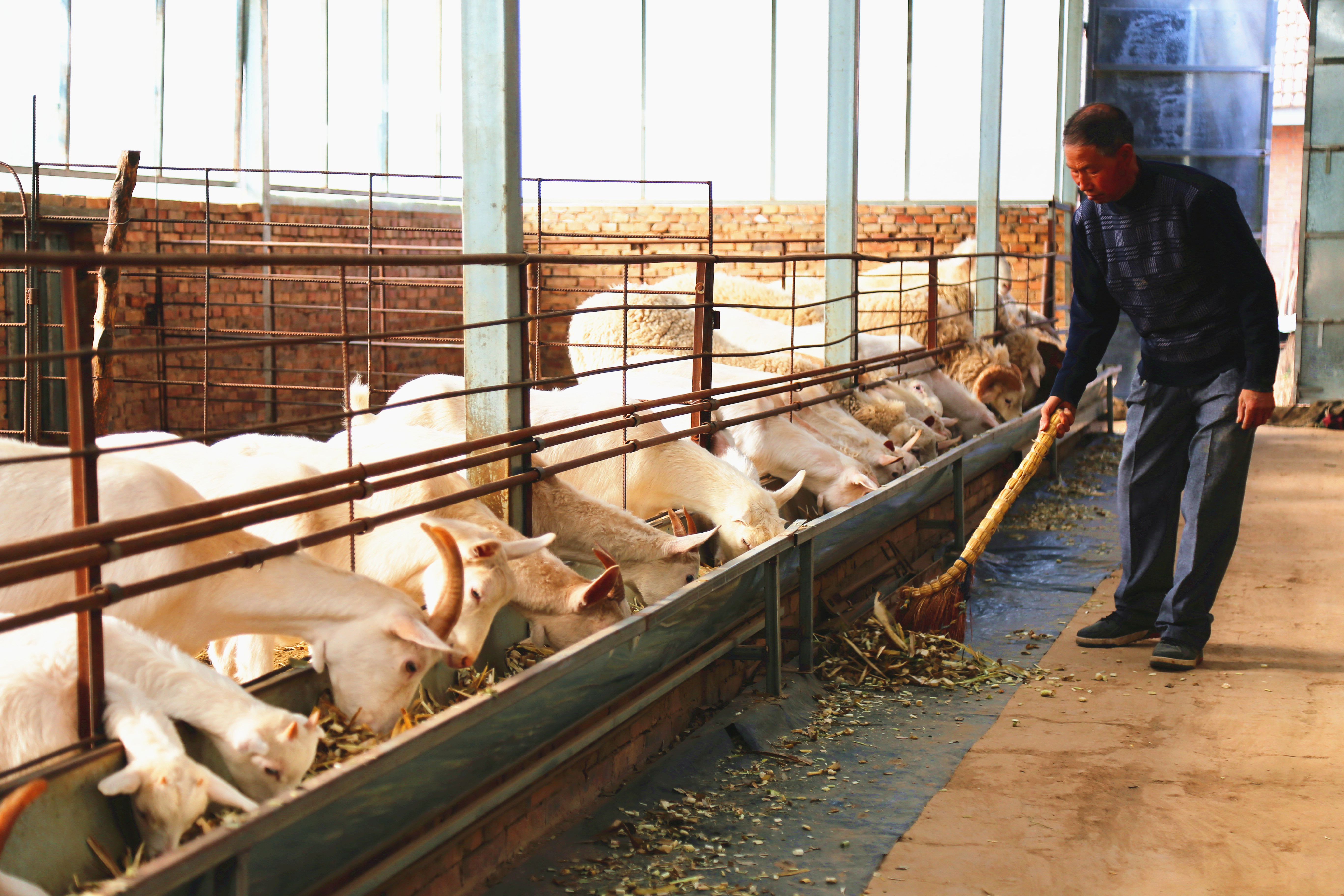 劉宗月在打掃羊舍。