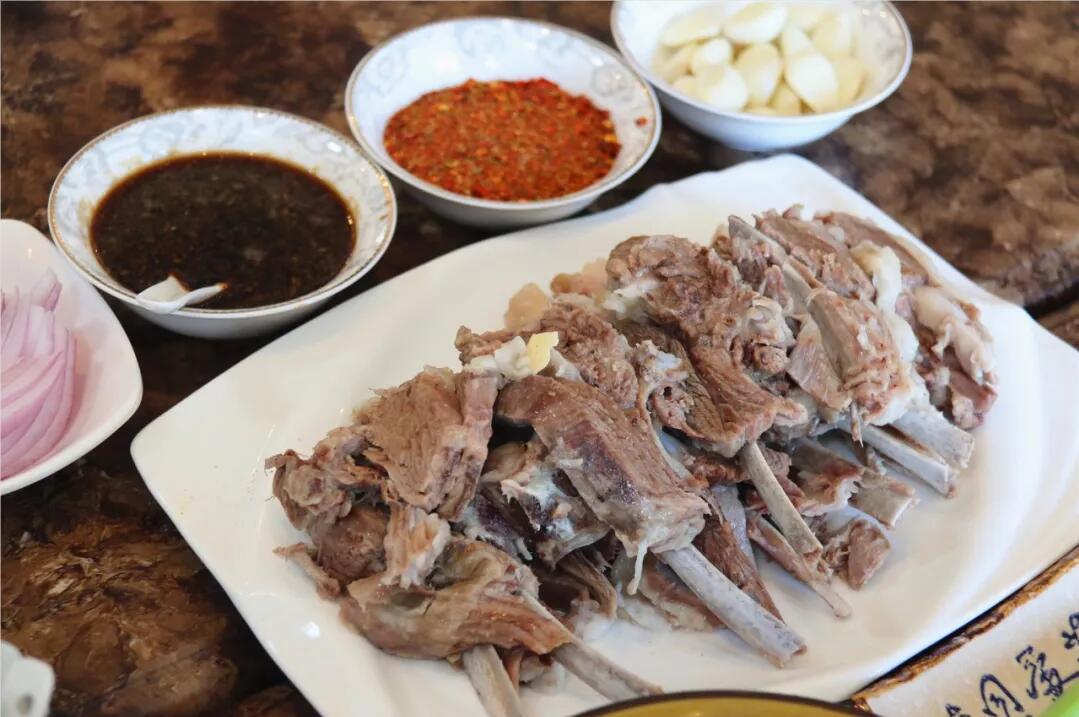 說起寧夏的清真美食,手抓羊肉最具代表性。手抓羊肉吃法有三種,即熱吃(切片后上籠蒸熱蘸三合油)、冷吃(切片后直接蘸精鹽)、煎吃(用平底鍋煎熱,邊煎邊吃)。配上一頭生蒜,一小碟陳醋,肉嫩多汁味鮮,不膩不膻,色香俱全。