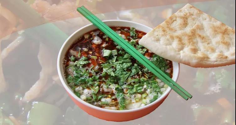 羊雜湯可說是寧縣地區(qū)夜市的“靈魂”,羊頭、羊心、羊肝、羊肺和羊肚五樣原料,配上煮羊肉的高湯,加上獨家配制的香料和秘制辣椒醬。對于寧夏人來說,紅油、白湯、綠蔥、粉肉,配上一塊酥軟的面餅,口味濃郁,一碗羊雜碎能在冬天帶來一整天的神清氣爽。
