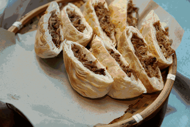 肉夾饃是古漢語“肉夾于饃”的簡稱,陜西傳統(tǒng)特色食物之一。最大的特點就是饃皮酥里嫩,肉香不膩。要一份涼皮和肉夾饃,再來一瓶