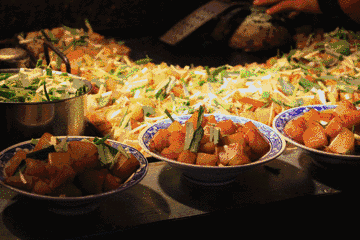 作為慶陽當?shù)刈罹咛厣囊坏烂朗?,土暖鍋的名聲可是響當當?shù)?。一口老鍋外形似老北京涮鍋肉,?nèi)容又像是東北大亂燉,蘿卜、白菜、粉條、豆腐等蔬菜打底,五花肉、排骨、丸子、酥肉等肉類蓋面。澆上鮮美骨湯燒開,木炭火天然的香氣纏繞著食物,散發(fā)出獨特而又迷人的氣息,勾著你那蠢蠢欲動的胃。寒冬里,約上三五好友圍著吃暖鍋暢談暢飲,又溫暖又滿足。