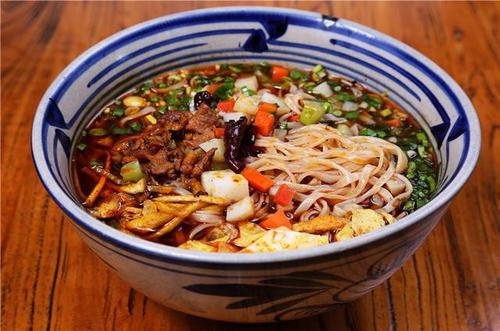 肉丸糊辣湯是西安回民清真小吃,是最受西安人歡迎的早餐之一。制作原料主要有牛肉、土豆、蓮花白等。吃前澆一勺店家精心熬制的紅艷艷的辣椒油,吃罷舌尖發(fā)麻,微微冒汗,渾身舒坦。