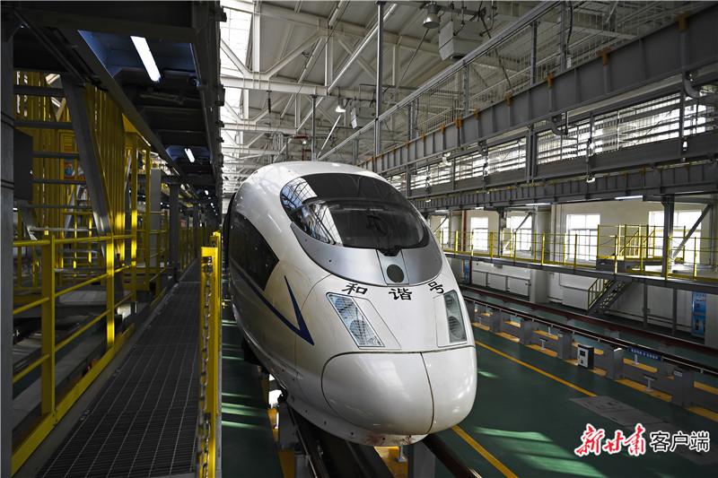 在銀川動車運(yùn)用所接受檢修的和諧號動車。新甘肅·甘肅日報記者 孟捷
