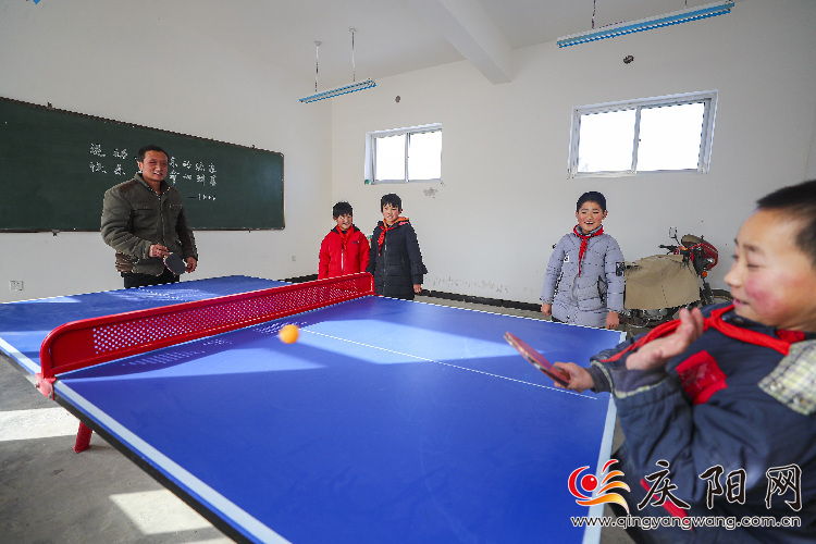 打兵乓球,是老師林亞東和孩子們最喜愛的課間活動。