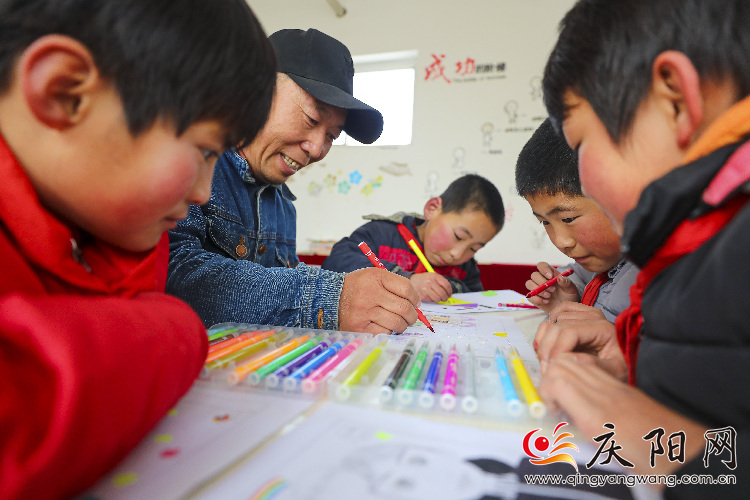 校長劉龍給孩子們講解作業(yè)中遇到的難題。