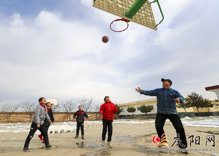 天氣晴朗的時候,教師王志斌喜歡教孩子們打籃球。