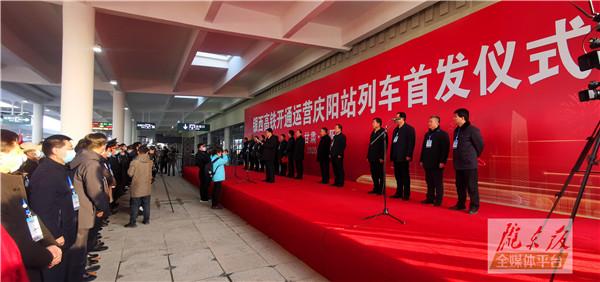 ????慶陽(yáng)網(wǎng)訊(記者 張昶昶) 12月26日上午9時(shí),隨著D4350次列車(chē)從銀西高鐵慶陽(yáng)站鳴笛發(fā)車(chē)開(kāi)往西安北站,慶陽(yáng)革命老區(qū)正式邁進(jìn)“高鐵時(shí)代”。發(fā)車(chē)前,我市在銀西高鐵慶陽(yáng)站隆重舉行銀西高鐵開(kāi)通運(yùn)營(yíng)慶陽(yáng)站列車(chē)首發(fā)儀式。