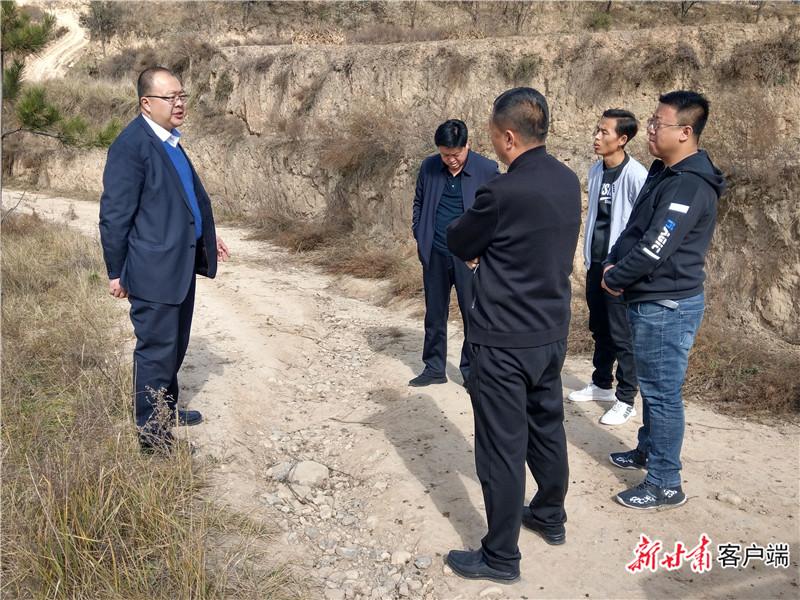 2018年12月12日,邱軍(左一)在華池縣城壕鎮(zhèn)太陽(yáng)村調(diào)研基礎(chǔ)設(shè)施建設(shè)和產(chǎn)業(yè)發(fā)展情況。