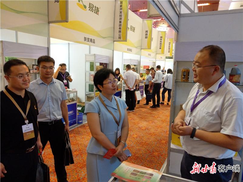 2019年9月10日,邱軍(右一)在易捷扶貧展銷會(huì)上推薦華池農(nóng)特產(chǎn)品。