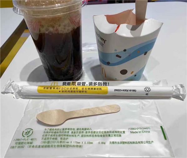 某餐飲店已換上紙吸管、木勺、可降解塑料袋。見習(xí)記者米靜攝