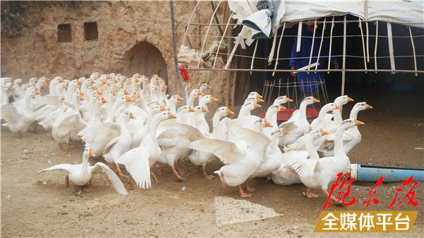 2019年,在幫扶干部的鼓勵下,岳小紅蓋起占地200平方米的保溫棚,以一只14元的價格,從四川引進500只鵝苗,重新利用起家里廢棄的4個窯洞,開始發(fā)展大鵝養(yǎng)殖。