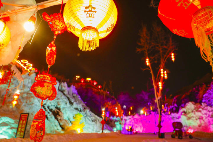 景點(diǎn)內(nèi)懸掛起大紅燈籠,年味濃濃。