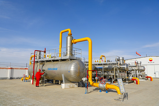 圖為隴東天然氣項目部試采作業(yè)區(qū)慶1集氣站的工作人員進(jìn)行日常巡檢。