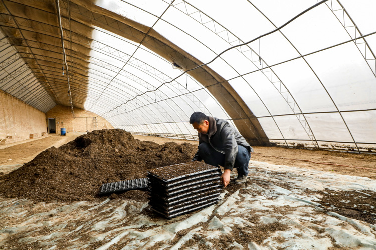 圖為大堡子村村民王有升正在大棚中勞作。
