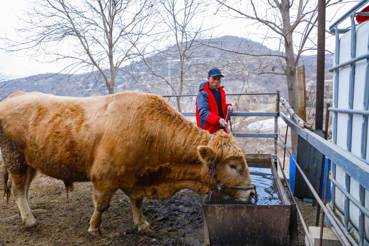 圖為大堡子村養(yǎng)殖戶(hù)王恒國(guó)正在飲牛。