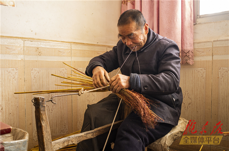 然而,在寧縣早勝鎮(zhèn)尚家村卻仍有十幾位老人一直堅(jiān)守著這門古老的手藝。終年累月不停地綁扎著笤帚,享受著其中的樂趣,將這門傳統(tǒng)手藝延續(xù)著、堅(jiān)持著……扎出了一條勤勞致富的新路子。