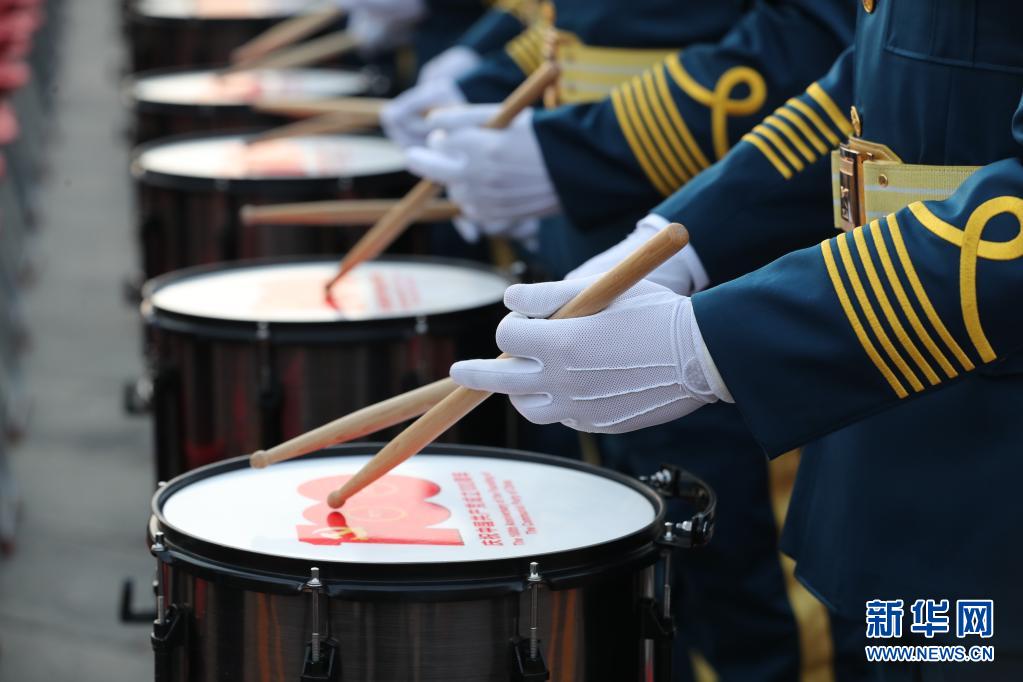 軍樂激揚(yáng),奏唱百年大黨風(fēng)華正茂。