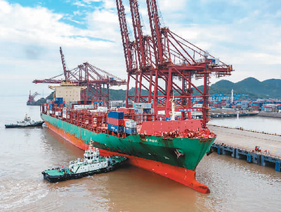 6月5日,“韋德印度(WIDE INDIA)”輪靠泊寧波舟山港金塘港區(qū)大浦口集裝箱碼頭,將在大浦口碼頭裝載1502標(biāo)準(zhǔn)箱,前往尼日利亞、多哥、貝寧、馬來(lái)西亞、新加坡等“一帶一路”沿線國(guó)家。