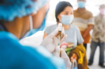 6月1日,一名醫(yī)務(wù)人員在柬埔寨金邊為民眾接種中國(guó)研制的新冠疫苗。