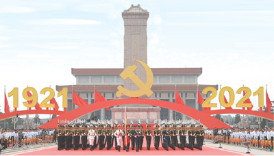 7月1日,來自中國人民解放軍的71架戰(zhàn)機飛過天安門廣場,向黨送上生日祝福;100響禮炮響徹云霄,鮮艷的五星紅旗在國旗護衛(wèi)隊的護送下,行進至廣場北側(cè)的升旗區(qū);聯(lián)合軍樂團奏響雄壯的《義勇軍進行曲》,鮮艷奪目的五星紅旗冉冉升起、迎風(fēng)飄揚……盛典上,來自不同部隊的官兵展現(xiàn)了一心向黨、矢志強軍的精神風(fēng)貌,為黨的百年華誕深情禮贊。