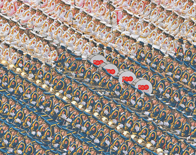 “向黨的生日獻禮,無論是內(nèi)容還是形式都要融入我們的真摯情感?!苯夥跑娷姌穲F團長黃艷輝說:“今年,聯(lián)合軍樂團演奏隊形和聲部編排都有了新變化。每一排設(shè)置100人,寓意中國共產(chǎn)黨成立100周年;第一排設(shè)置100名禮號手,寓意向中國共產(chǎn)黨百年華誕致敬;演奏上加大了木管聲部比例,讓團隊的音響更加飽滿,富有感染力?!?/p>