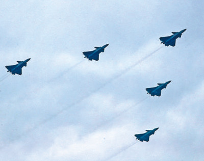 15架殲—20飛機分成3個5機中隊呼嘯入場,把飛行表演推向高潮。殲—20飛機是我國自主研制的新一代隱身戰(zhàn)斗機,如此大規(guī)模的殲—20編隊飛越天安門廣場尚屬首次。