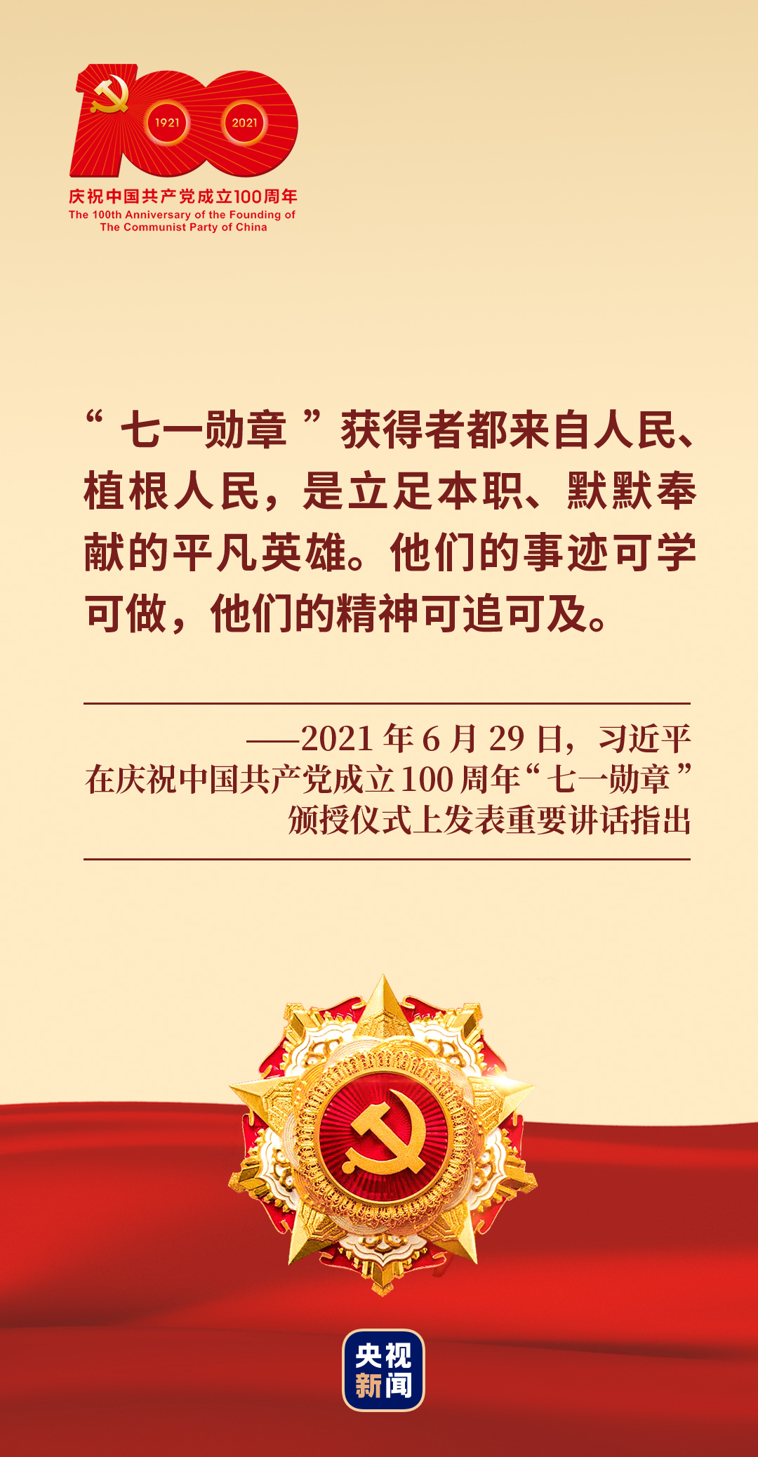 習(xí)近平總書記向“七一勛章”獲得者頒授勛章,稱贊他們是各條戰(zhàn)線黨員中的杰出代表,“他們的事跡可學(xué)可做,他們的精神可追可及?!?/p>
